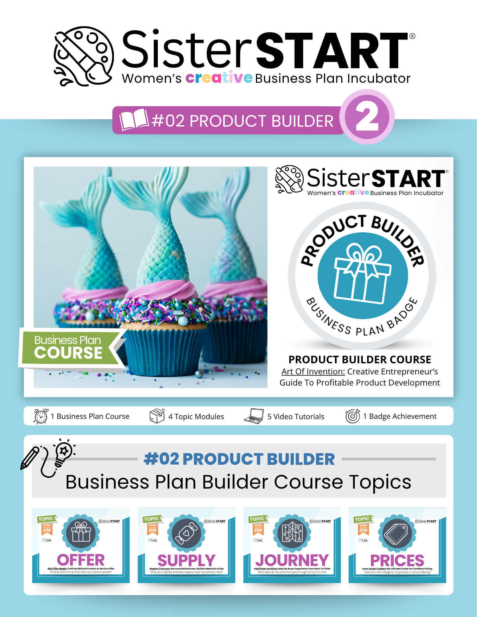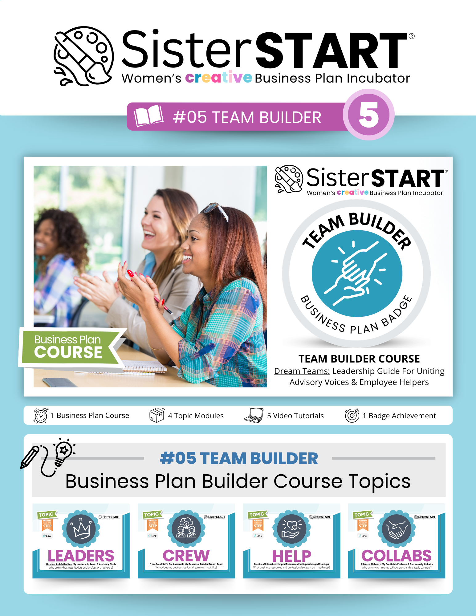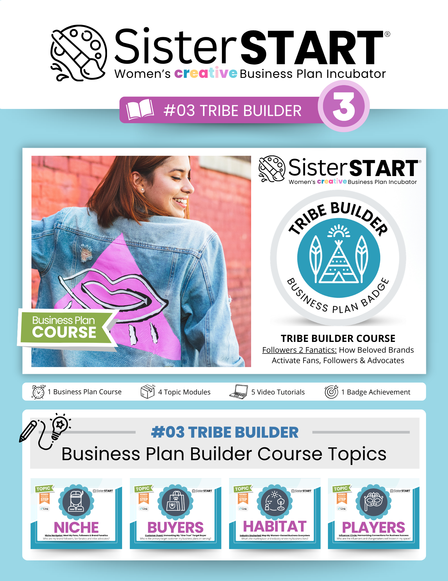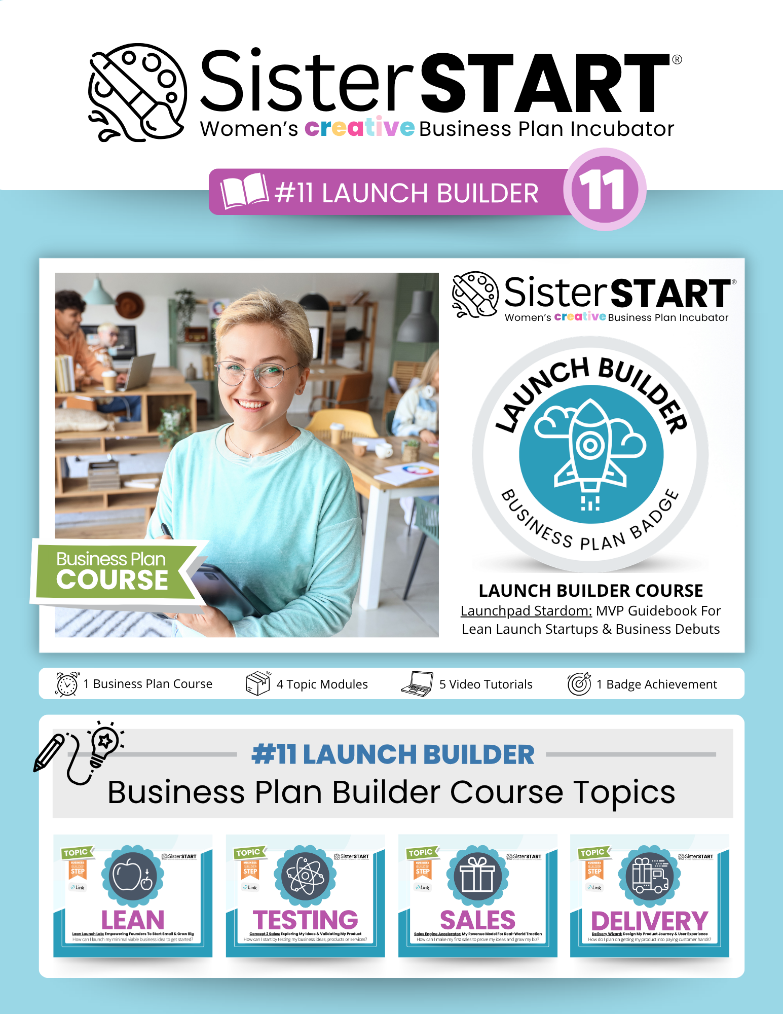 Unpack your Free SisterSTART® DIY Business Plan Builder Toolkit with on-demand video tutorials, printable worksheets, and colorful flipbooks to support your small business journey.